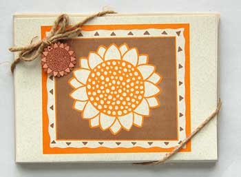 Six Sunflower note cards and envelopes are printed in on recycled paper with soybean inks. Matching copper charm on box cover. Made in U.S.A.